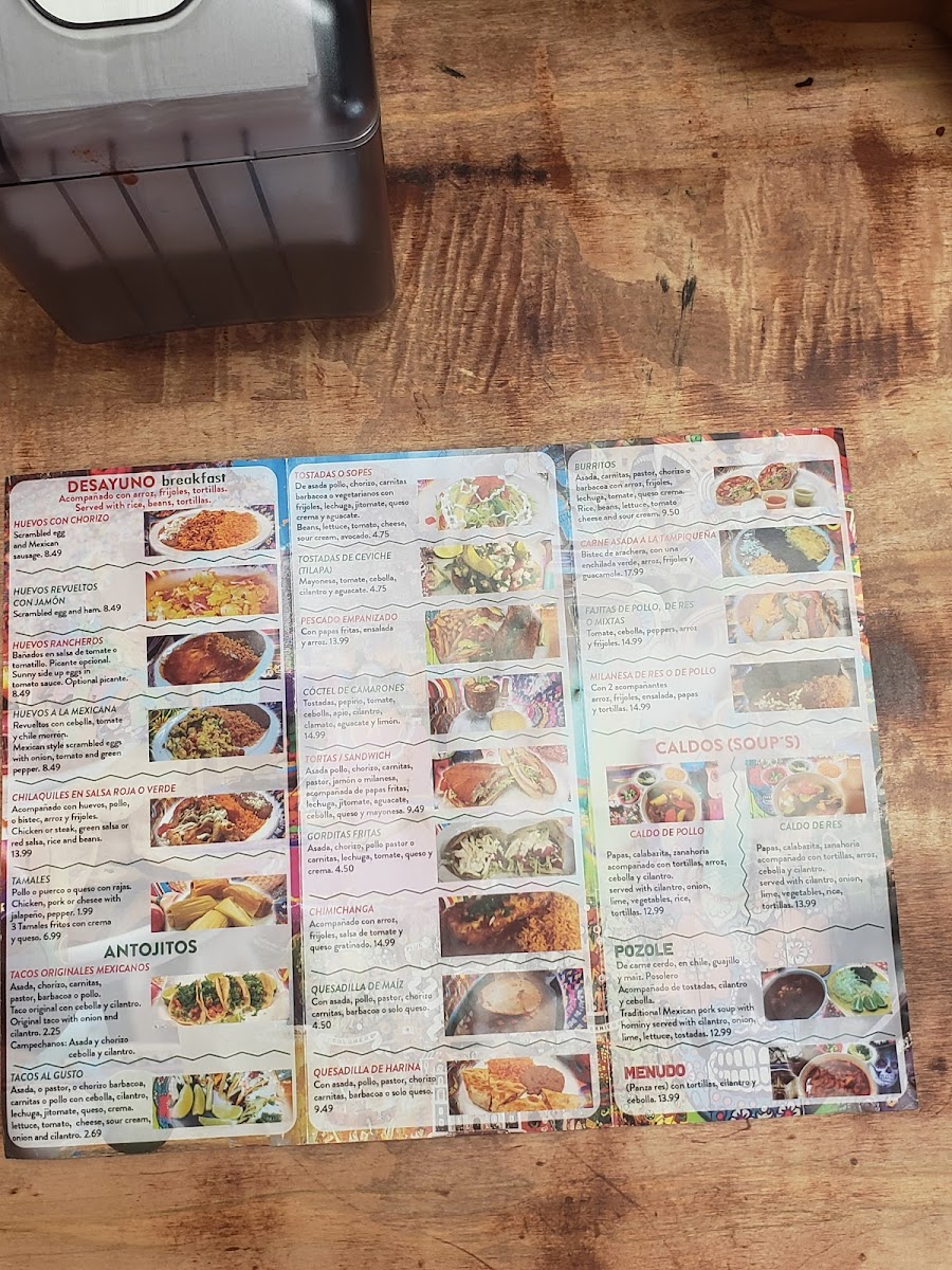 Served with rice and beans. Flour or corn tortilla. Acompanada con arroz y frijoles. Tortilla de harina o maiz. Choice of Protein | Quesadilla: Asada $0.50, Pollo, Pastor, Chorizo, Carnitas.